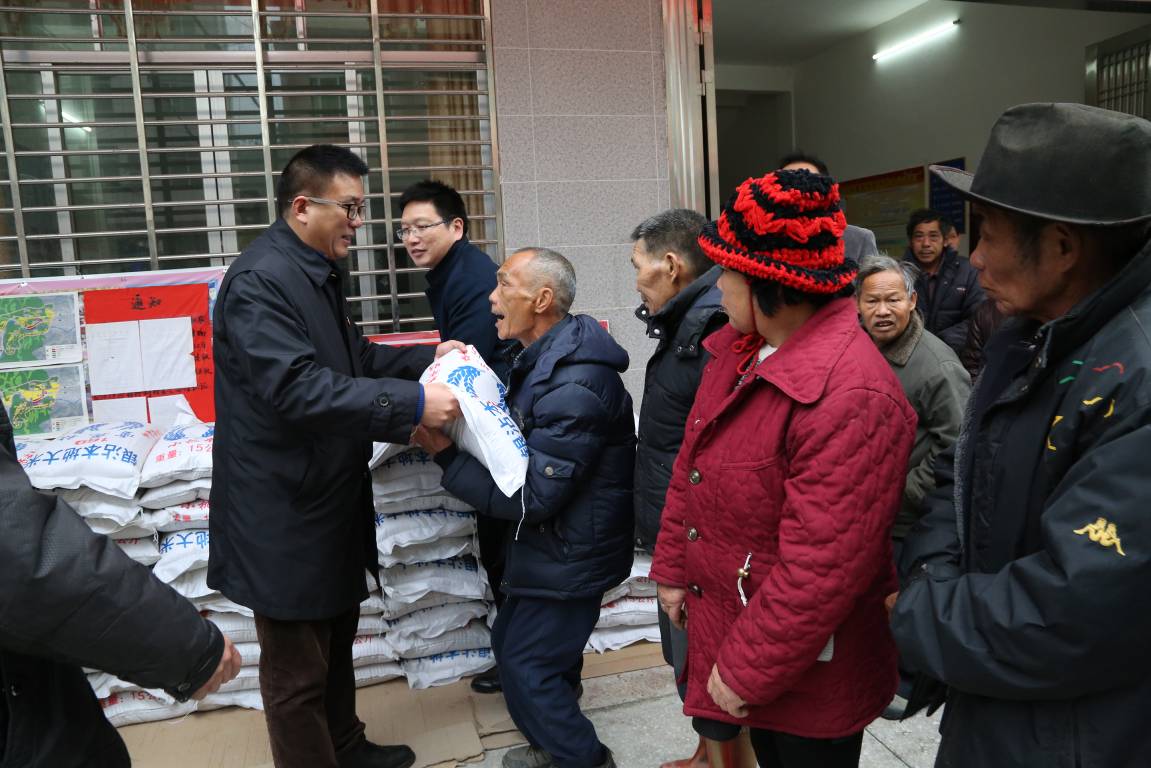 9日,陈立松书记一行一到合水镇,即与省地质局扶贫工作队队员、村干部上清水山实地考察新云村油茶种植示范基地。之后,一行人员到村委会慰问新云村107户贫困户,为他们每户发放大米。